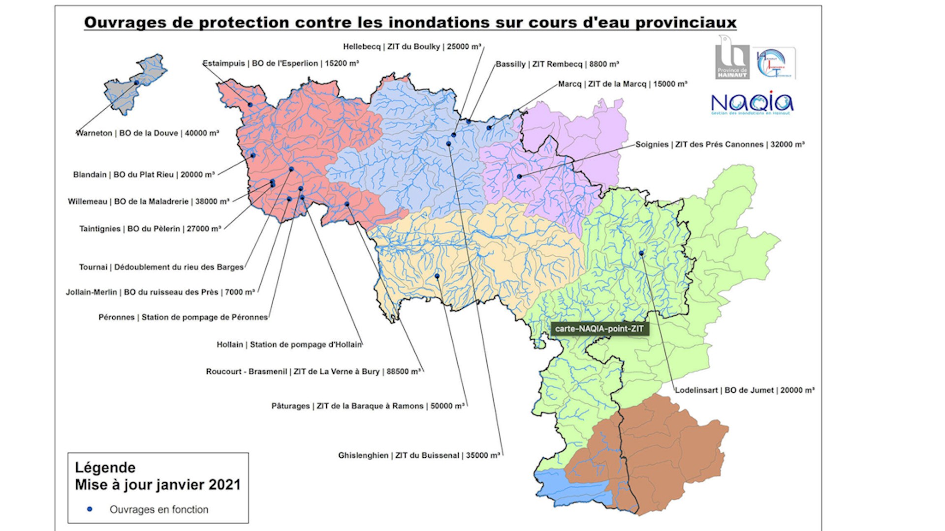 À Colfontaine, la configuration du territoire et la forte urbanisation ont déjà exposé certains quartiers aux inondations. La province de Hainaut réfléchit donc depuis plusieurs années à des solutions pour protéger, notamment, le quartier de la place St Pierre et installe une zone d’immersion temporaire, plus communément appelé bassin d'orage, capable de capter d’immenses volumes d’eau grâce à une digue équipée de vannes pour contrôler le débit du cours d’eau et un très grand bassin en cours de construction près de la rue du rossignol en bas du bois de Colfontaine. Il peut capter jusqu’à 40.000 m3 d’eau pour contrer de longs épisodes pluvieux ou des pluies torrentielles responsables des inondations.