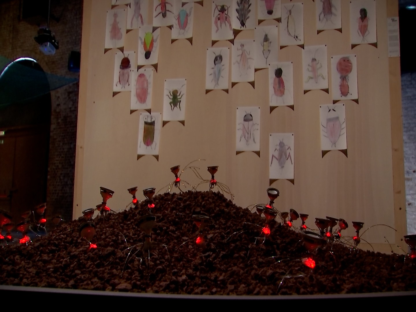 Des iles Tuvalu, amenées à disparaitre par la montée des eaux qui deviendra peut être le seul pays contraint à être digitalisé, ou encore de ce filet vert tendu de part en part de la salle, symbole de la récolte des olives dans les pouilles menacées de disparition à cause d'une bactérie. Mais le propos n’est , pour autant, pas si pessimiste. Il nous rappelle également combien notre environnement nous est important, source de souvenirs et de sensations et combien l’humain, tout comme la nature, peut être résilient. Une oeuvre en particulier réalisée avec des enfants Chiliens, invite les visiteurs à créer leur interprétation du souvenir, quand l'oeuvre présente plusieurs dessins de criquets, qui lorsqu'ils sont entendus pendant la nuit par ces enfants, leurs permettent de s'endormir et qu'ils veulent protéger.