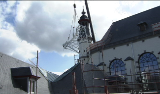Mons - Un cylindre de verre relie la chapelle et le couvent